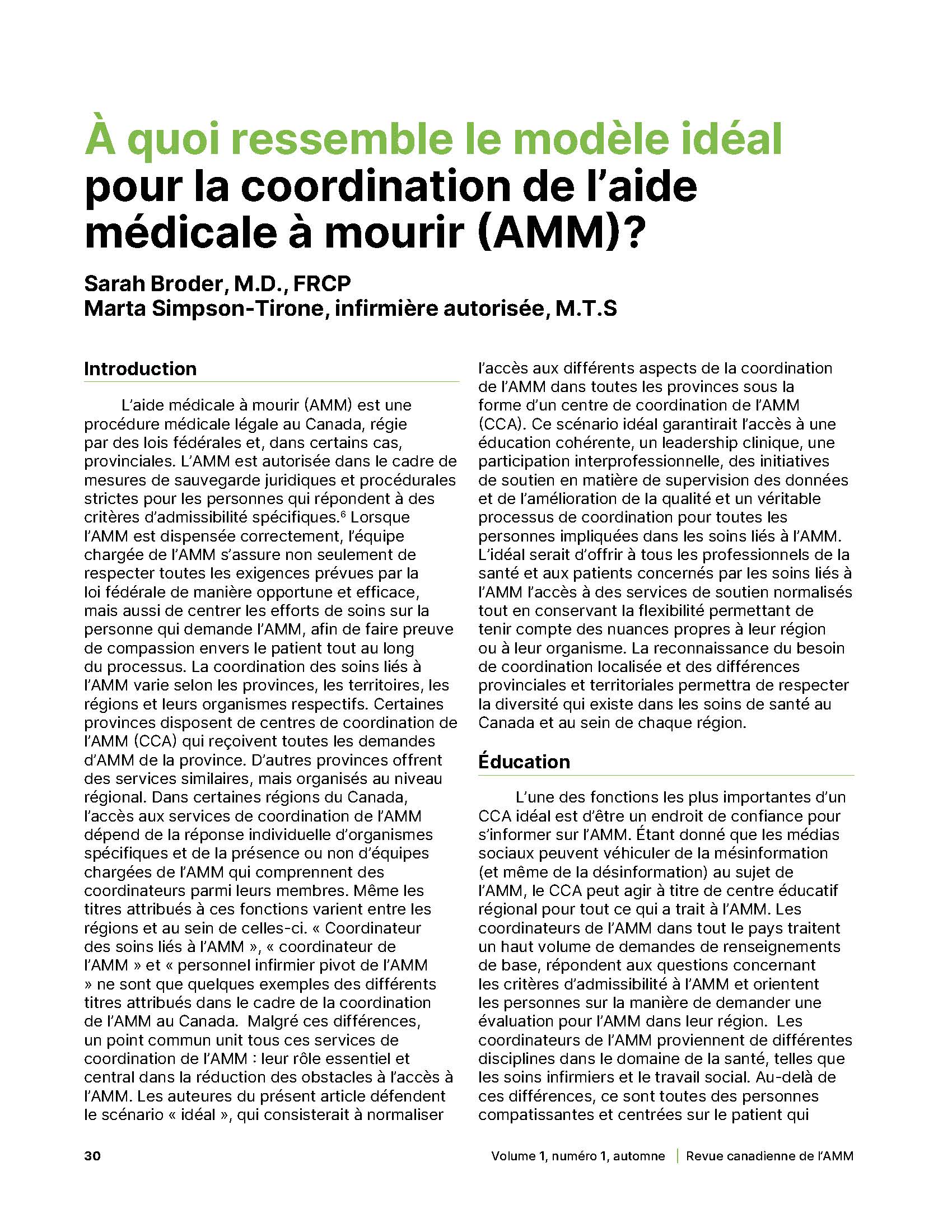 - À quoi ressemble le modèle idéal pour la coordination de l’aide médicale à mourir (AMM)?