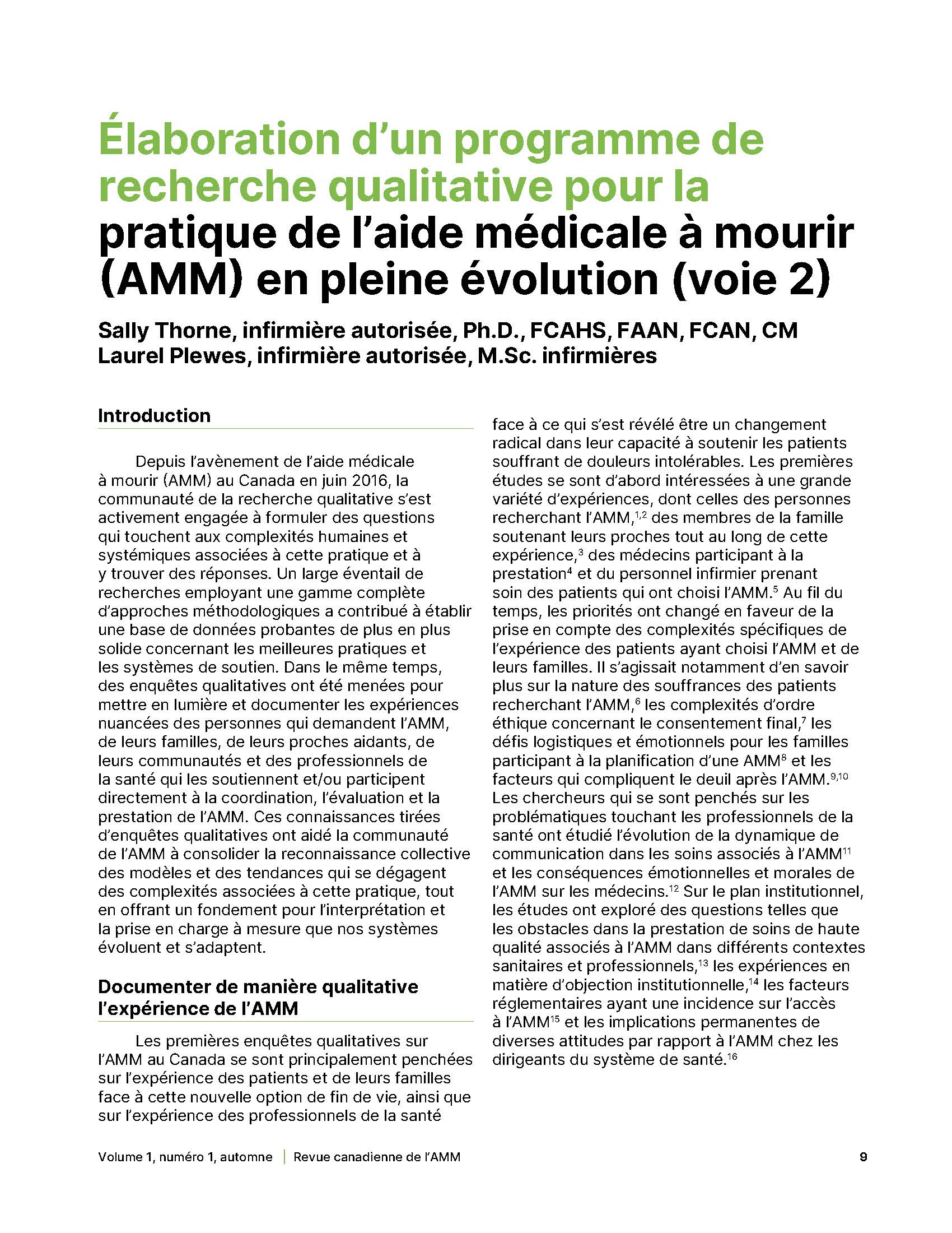 - Élaboration d’un programme de recherche qualitative pour la pratique de l’aide médicale à mourir (AMM) en pleine évolution (voie 2)