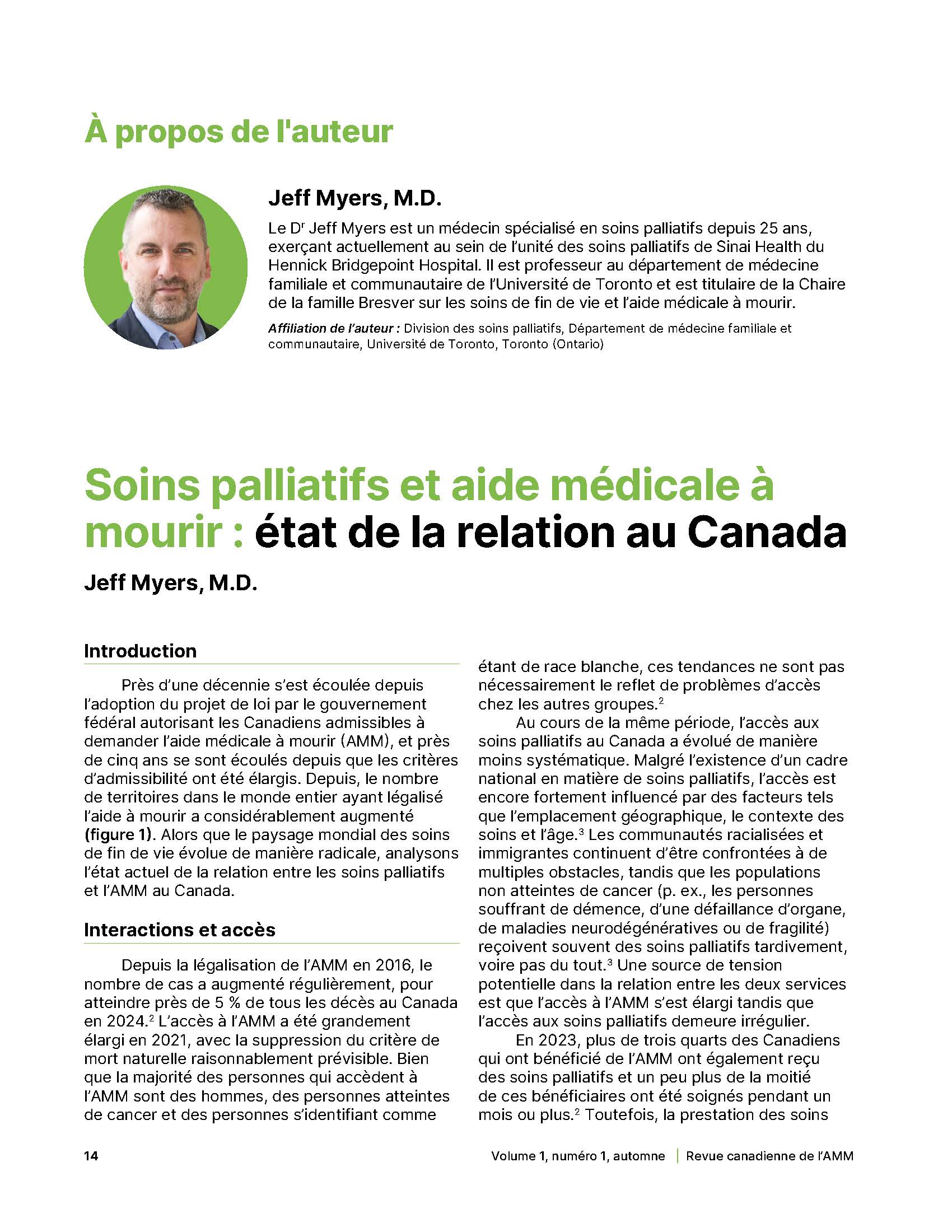 - Soins palliatifs et aide médicale à mourir : état de la relation au Canada